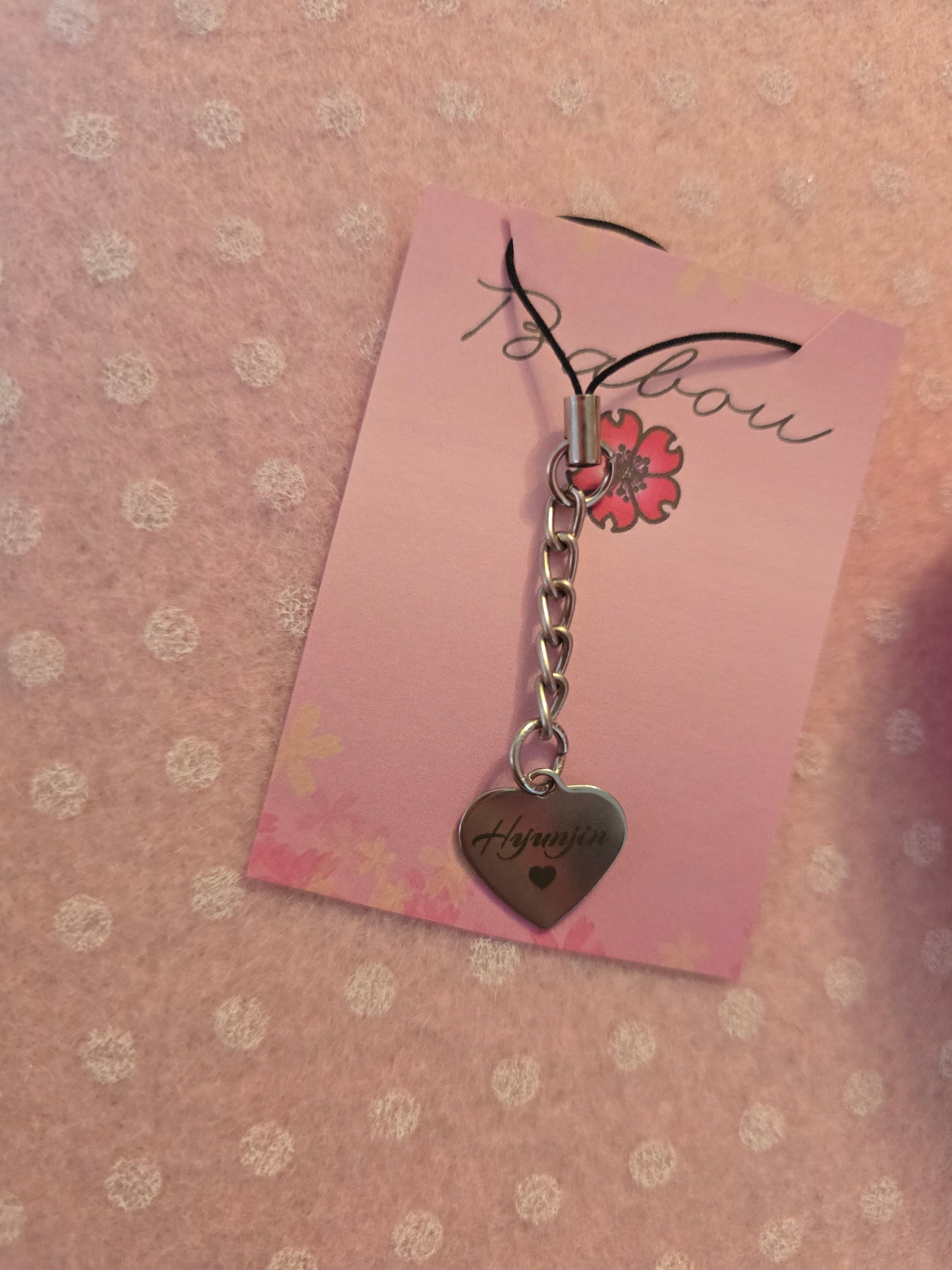 Charm per borsa o telefono con cuore in acciaio inciso al laser
